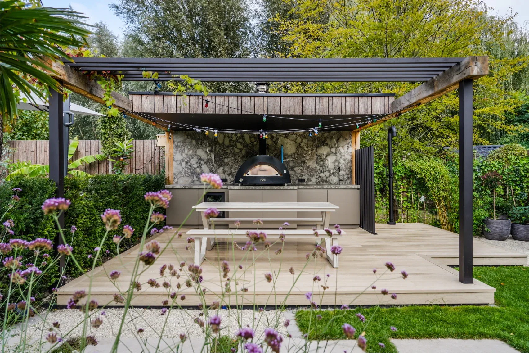 Wil je het hele jaar door gebruikmaken van je buitenkeuken? Dan is een combinatie met een veranda of overkapping ideaal. Je kookt beschut tegen regen en wind en verlengt het buitenseizoen aanzienlijk.
