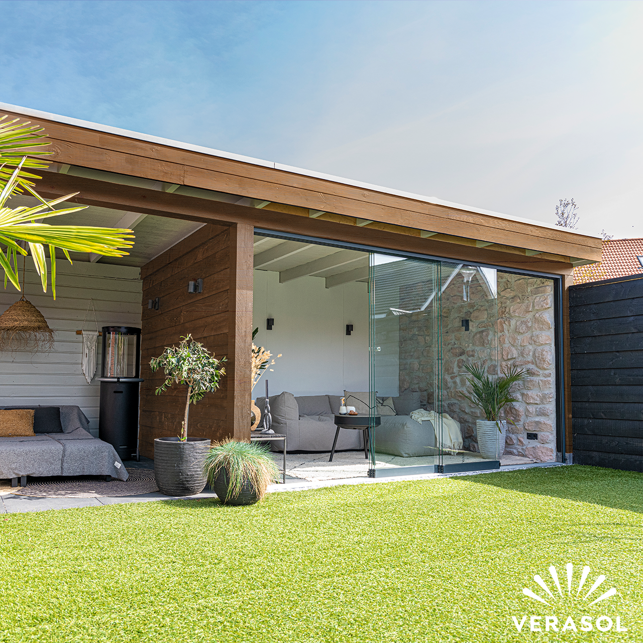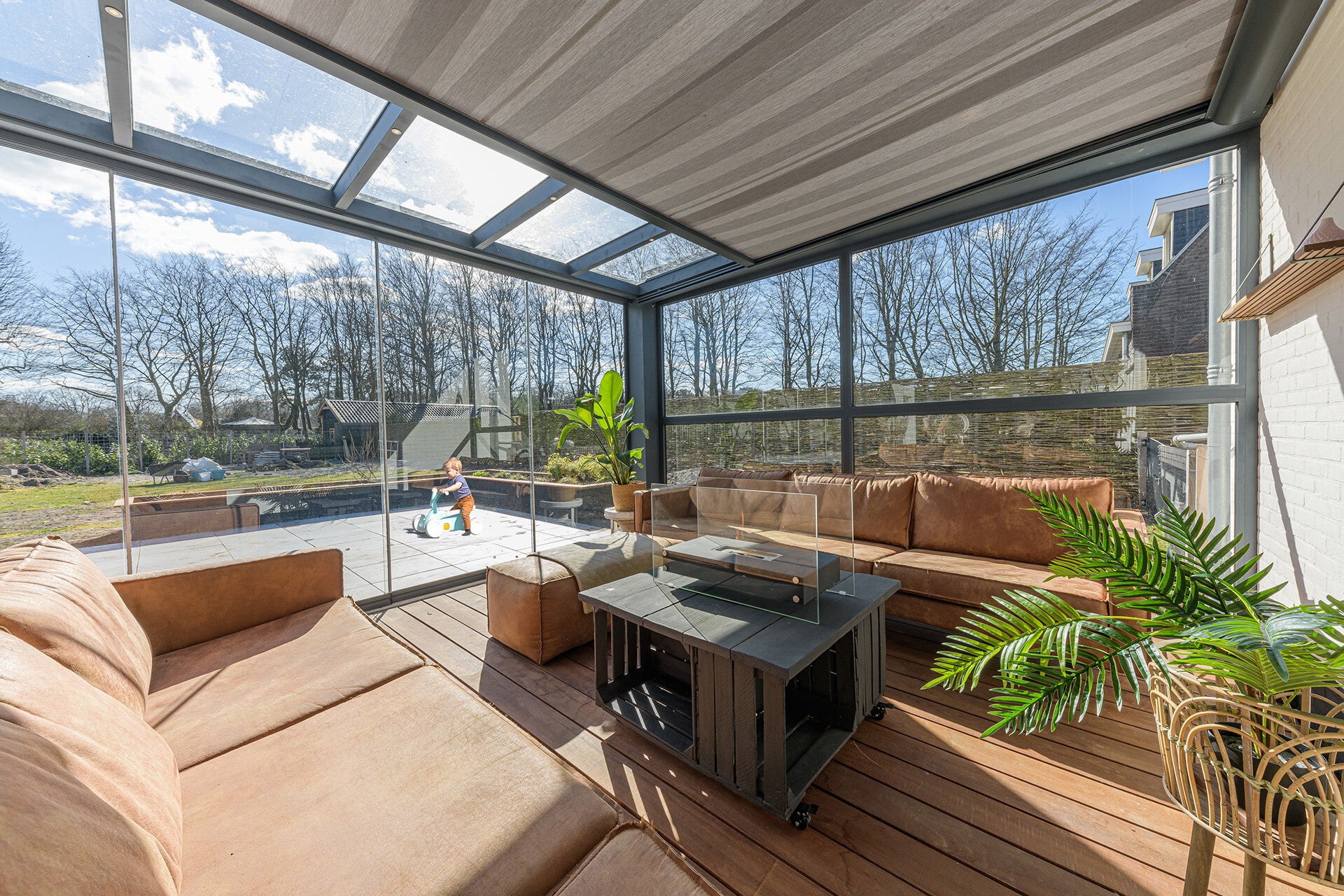 Flexibel en praktisch: schuif de wanden open voor frisse lucht, sluit ze voor warmte en comfort. Altijd uitgevoerd in gehard glas.